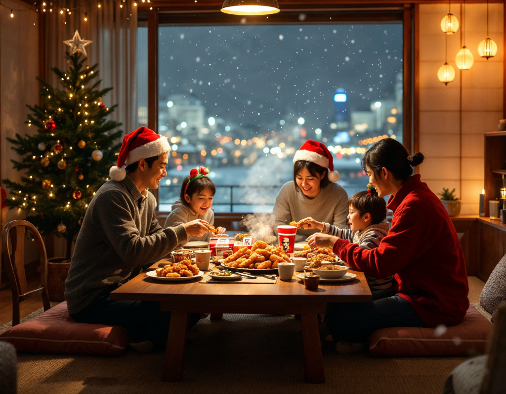 ที่น่าแปลกใจคือ อาหารคริสต์มาสของญี่ปุ่นไม่ใช่ไก่งวงอบแบบตะวันตก แต่เป็นไก่ทอดจากร้าน KFC ย้อนไปเมื่อปี 1974 ร้าน KFC ในญี่ปุ่นเริ่มแคมเปญ “Kentucky for Christmas” จนกลายเป็นประเพณีที่หลายครอบครัวต้องสั่งจองไก่ทอดล่วงหน้าเป็นเดือน